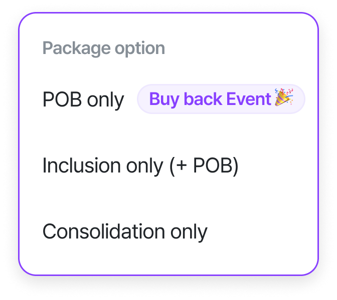 Each package can be set to Consolidation, Inclusion Only, or POB Only.